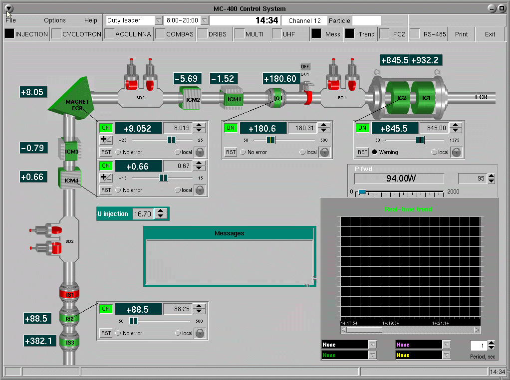 В системе управления ускорителем используется 5 модулей Smartbox-4, 3 системы Smartbox-6 и более 20 других вспомогательных модулей. Программное обеспечение функционирует на операционной системе реального времени QNX и SCADA системе FlexCtrl. Общее количество переменных в системе управления около 5000.